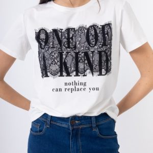 Λευκό Κοντομάνικο Μπλουζάκι με Τύπωμα “One of a Kind” & Δαντέλα (Αντιγραφή)