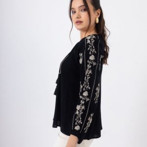 Μοντέρνα Μαύρη Μπλούζα με Κορδονάκι & Σούρες