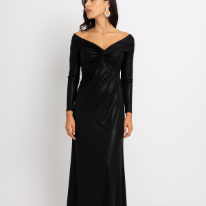 Φόρεμα μεταλιζέ με ιδιαίτερη λαιμόκοψη και εντυπωσιακό δέσιμο στο μπούστο εκάι
