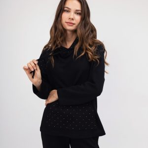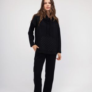 Σετ Φούτερ-Μπλούζα μαυρη με strass με παντελόνι