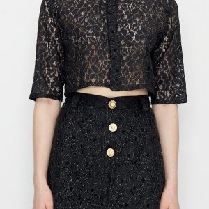 Μπλουζάκι με ψηλό λαιμό με αγγλικό κέντημα λευκό