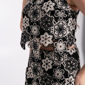 Κεντητό Σετ Μαύρο – Εκρού με Cropped Top και Midi Φούστα