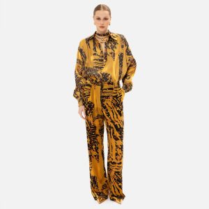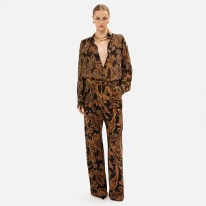 GOLDEN-BROWN PAISLEY STRAIGHT-LEG PANTS