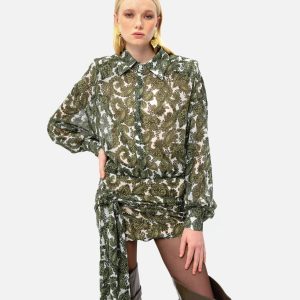 Σετ με ιδιαίτερα floral σχέδια και άνισο βολάν στη φούστα μπορντώ