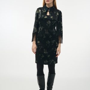 Φόρεμα μακρύ ντεβορέ με μπίλια στο λαιμό