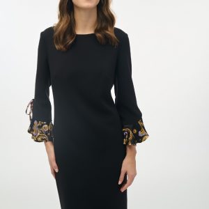 Φόρεμα κρεπ μονόχρωμο με λεπτομέρειες στο μανίκι
