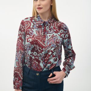 Μπλούζα μπροντερί με λεπτομέρεις από λινό