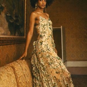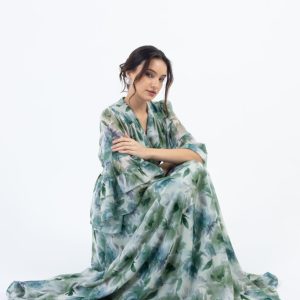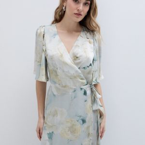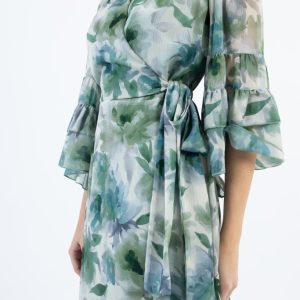Γυναικείο Φλοράλ Maxi Φόρεμα Κρουαζέ σε Πράσινες – Σιελ Αποχρώσεις