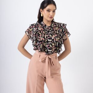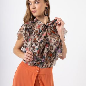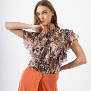 Πουκάμισο Φλοράλ Μπεζ-Εμπριμέ με Εντυπωσιακό Βολάν ()