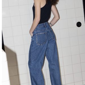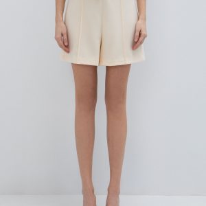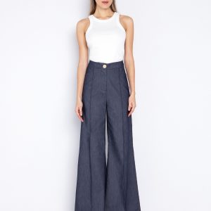 Παντελόνα ψηλόμεση μπεζ με ζώνη και κουμπί