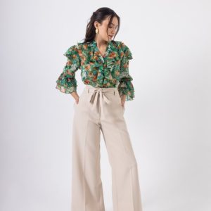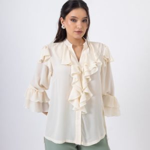 Chic Εκρού Πουκάμισο με Βολάν & Κουμπιά