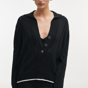 LAUREN KNITTED BLOUSE BLACK/WHITE