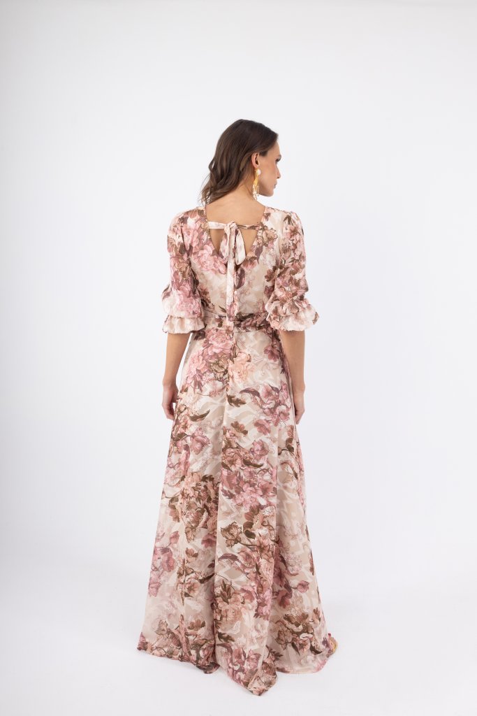 Γυναικείο Κρουαζέ Maxi Φόρεμα Εκρού με ροζ και φλοράλ σχέδια )