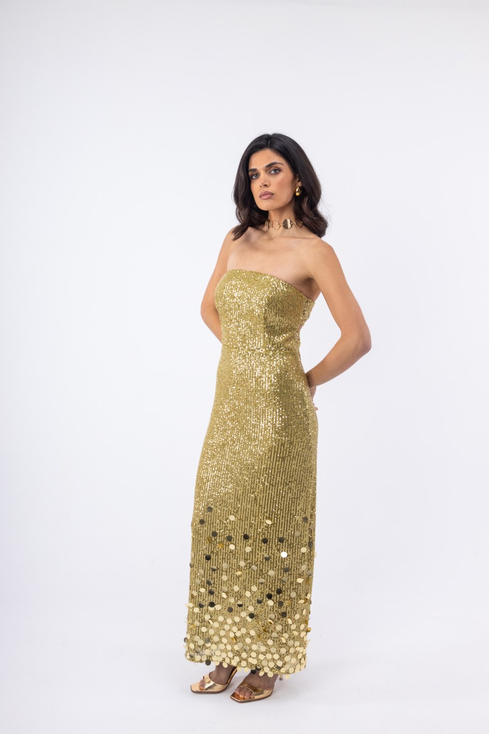 Γυναικείο Φόρεμα lime στράπλες με παγιέτες