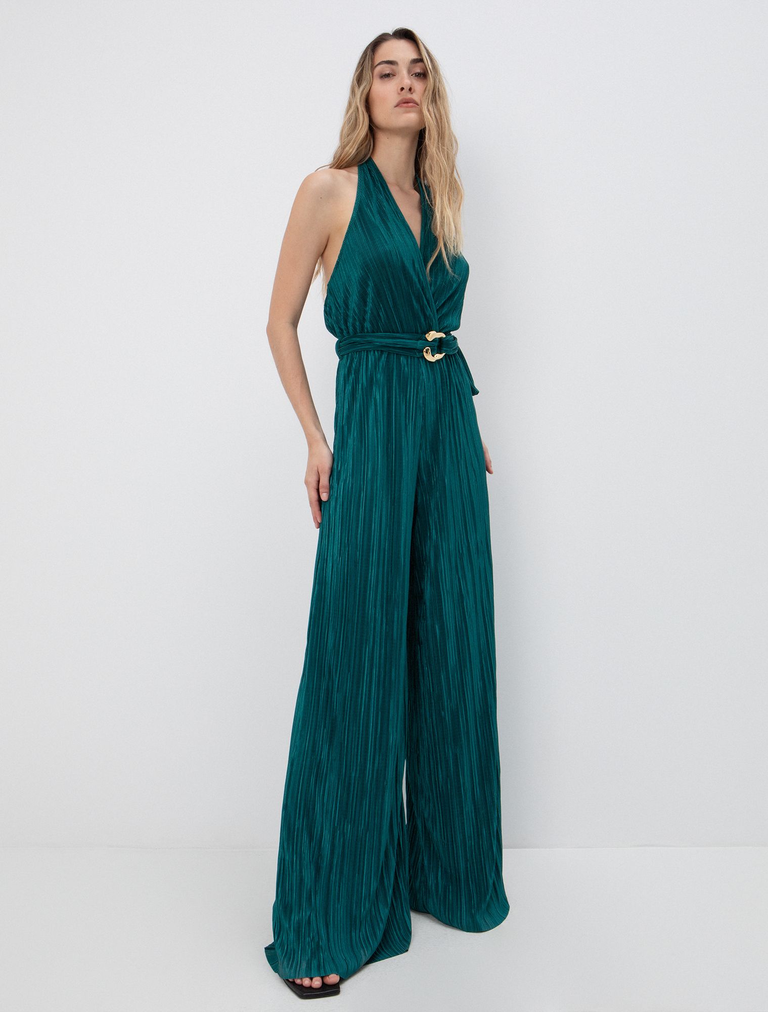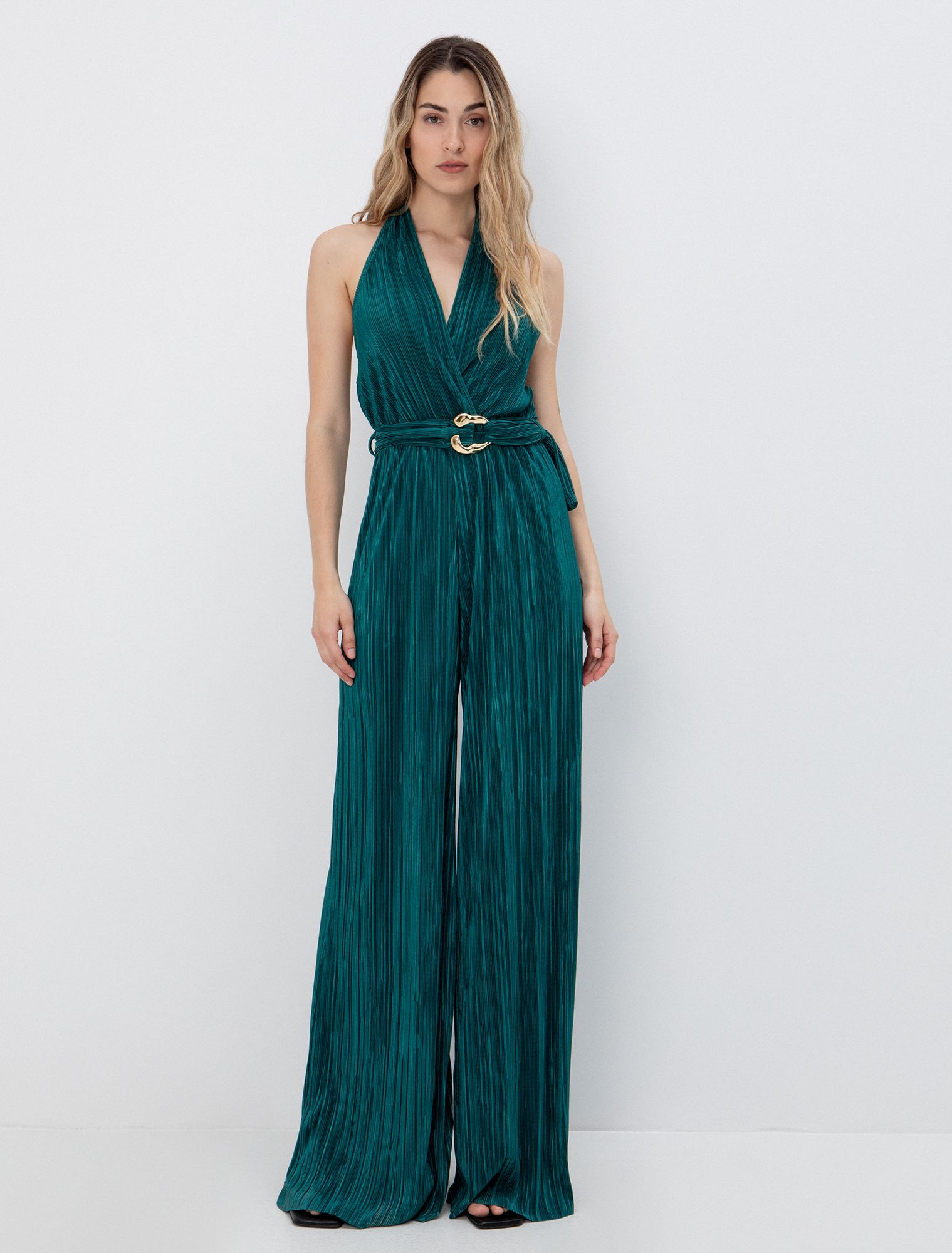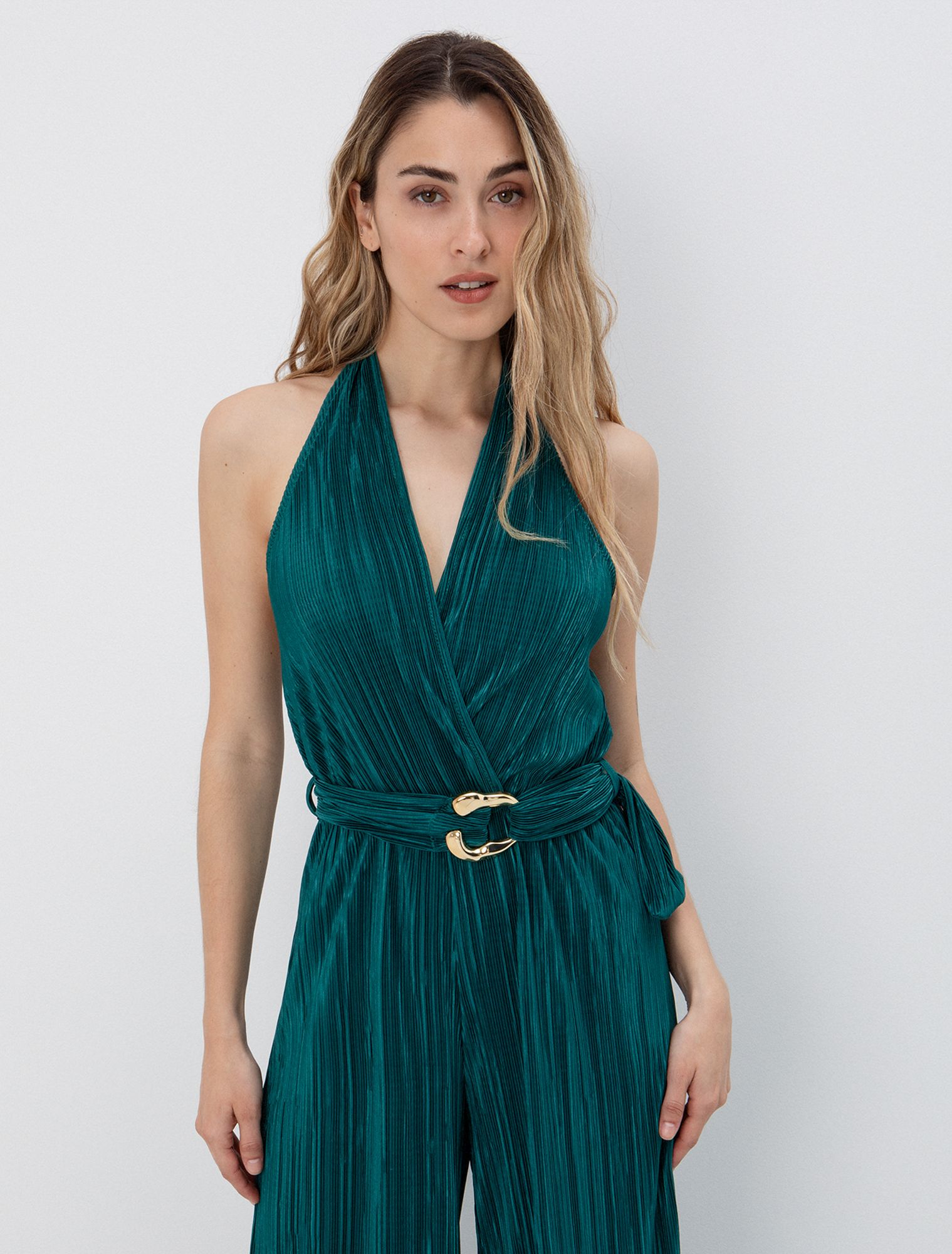 Πλισέ ολόσωμη φόρμα με ζώνη