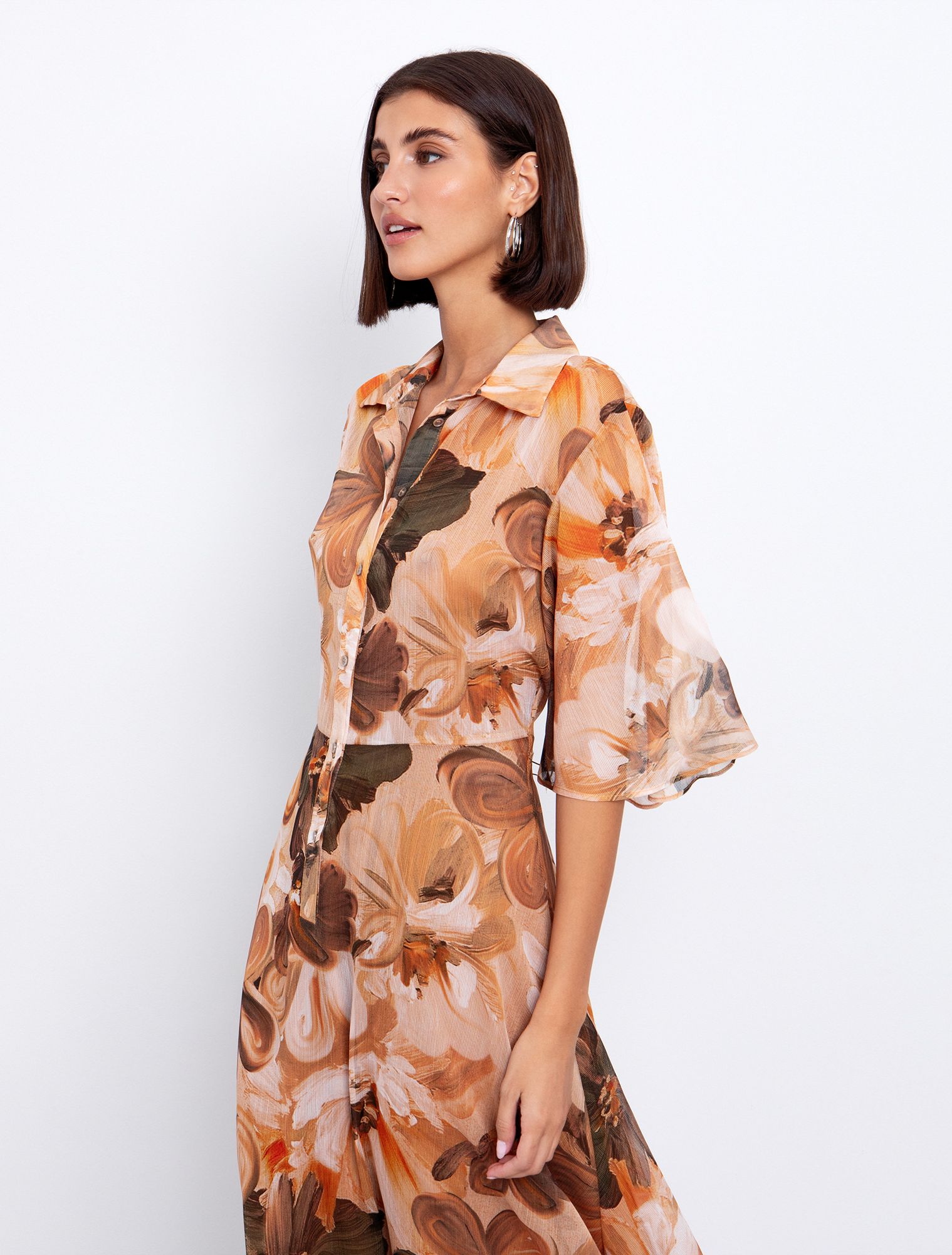 - Φλοράλ τύπωμα σε γήινες αποχρώσεις