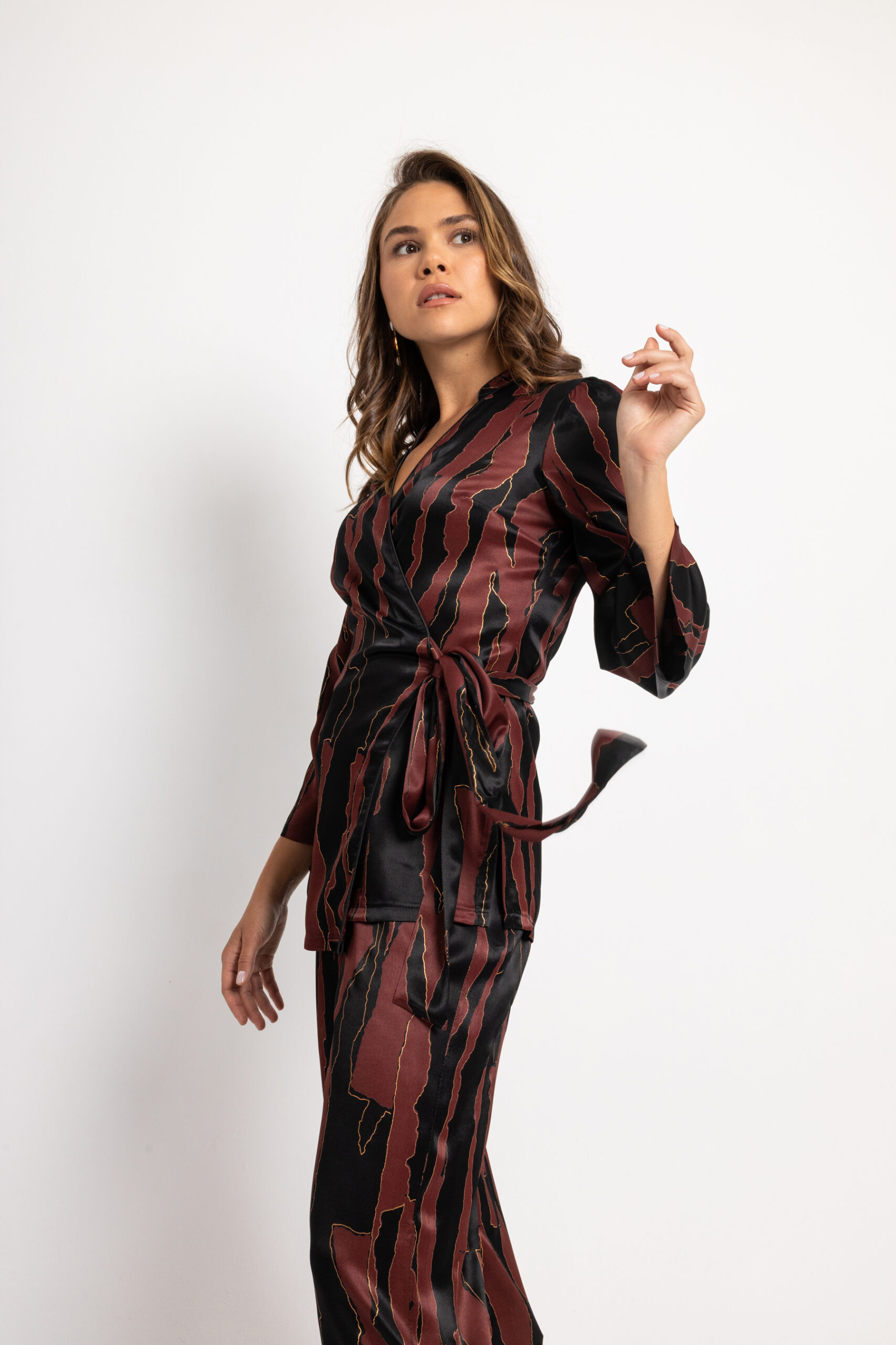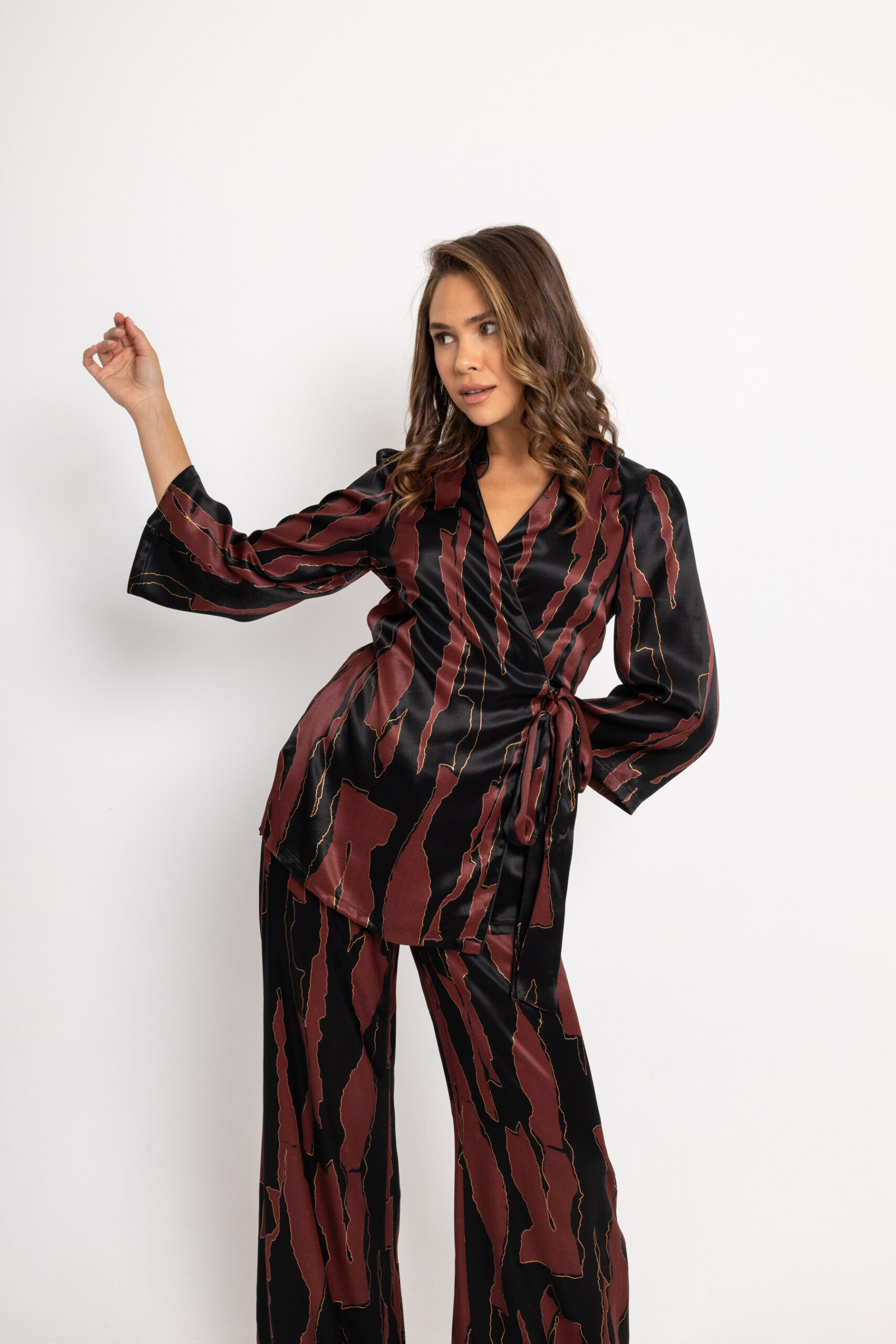 Σετ σε μαύρο χρώμα με μπορντώ και χρυσές λεπτομέρειες.