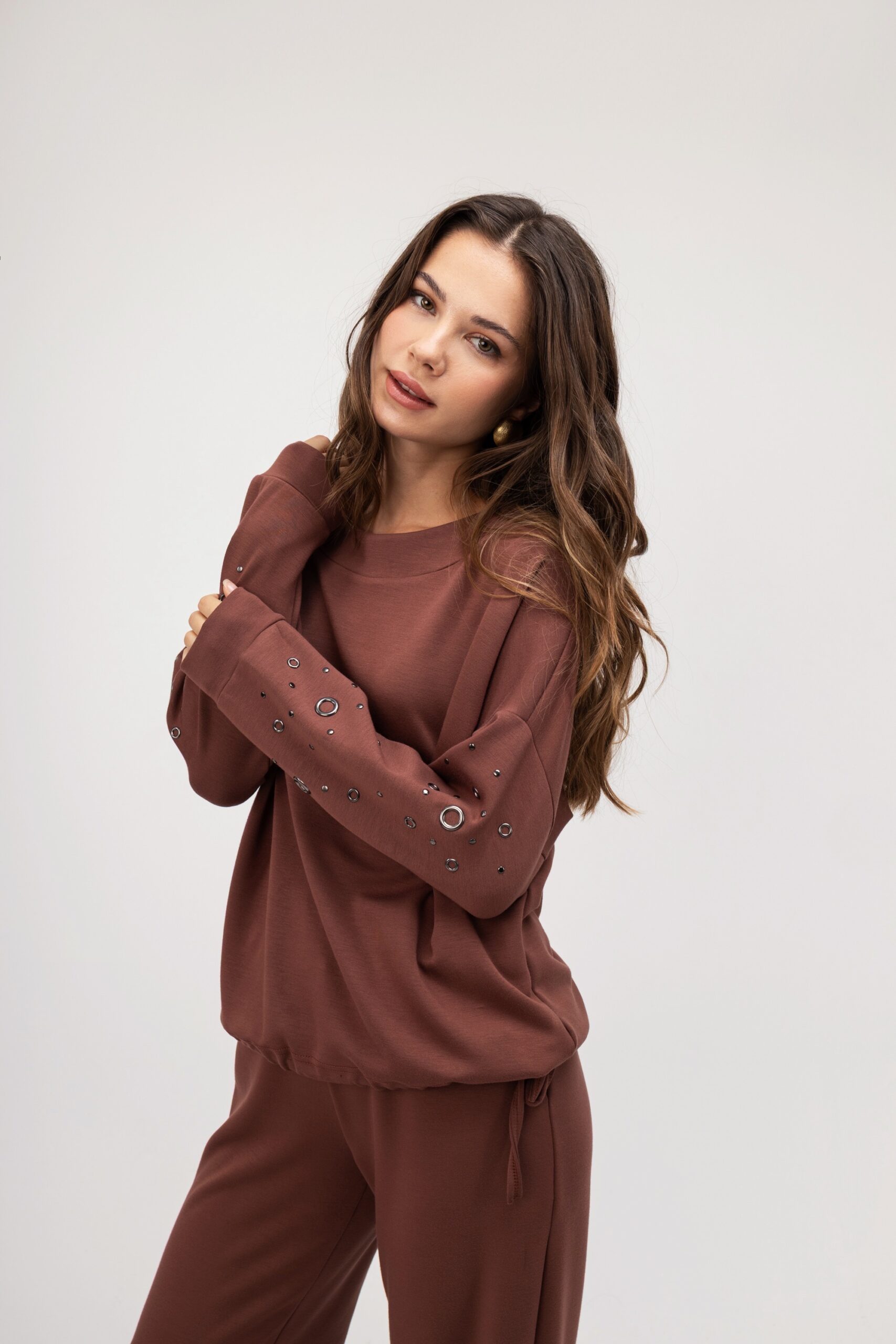 Σετ Φούτερ-Μπλούζα μαυρη με strass με παντελόνι