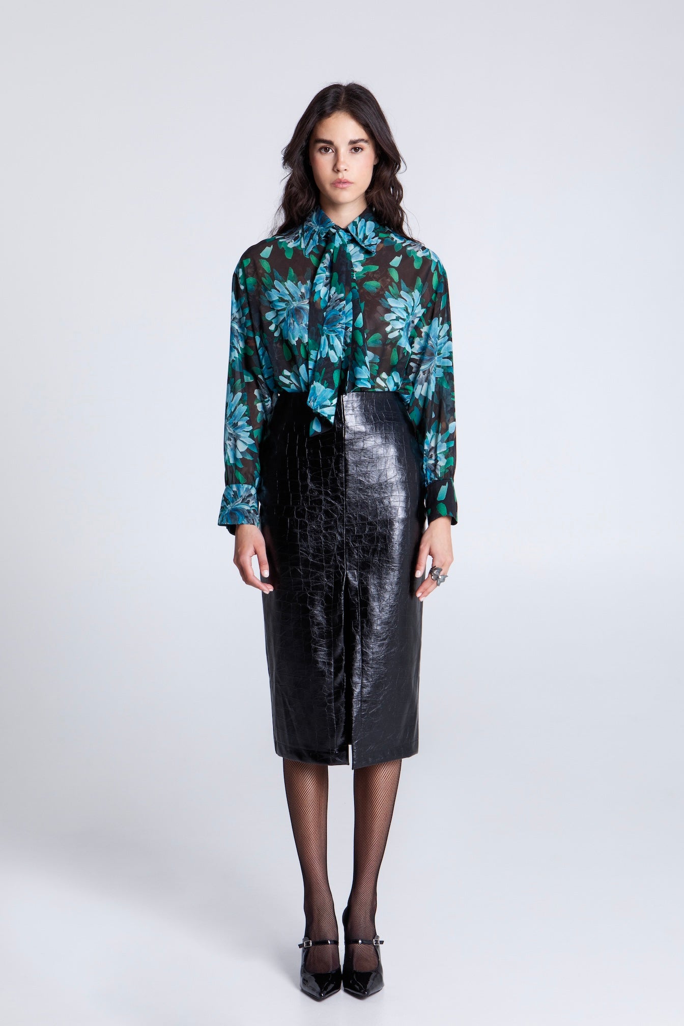 BLACK CROCO MIDI SKIRT