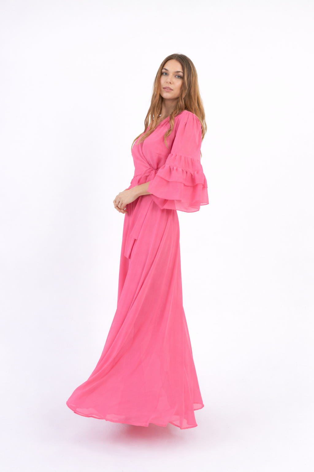 Maxi Φόρεμα Σομόν με Κρουαζέ Σχέδιο & Χρυσοκλωστή