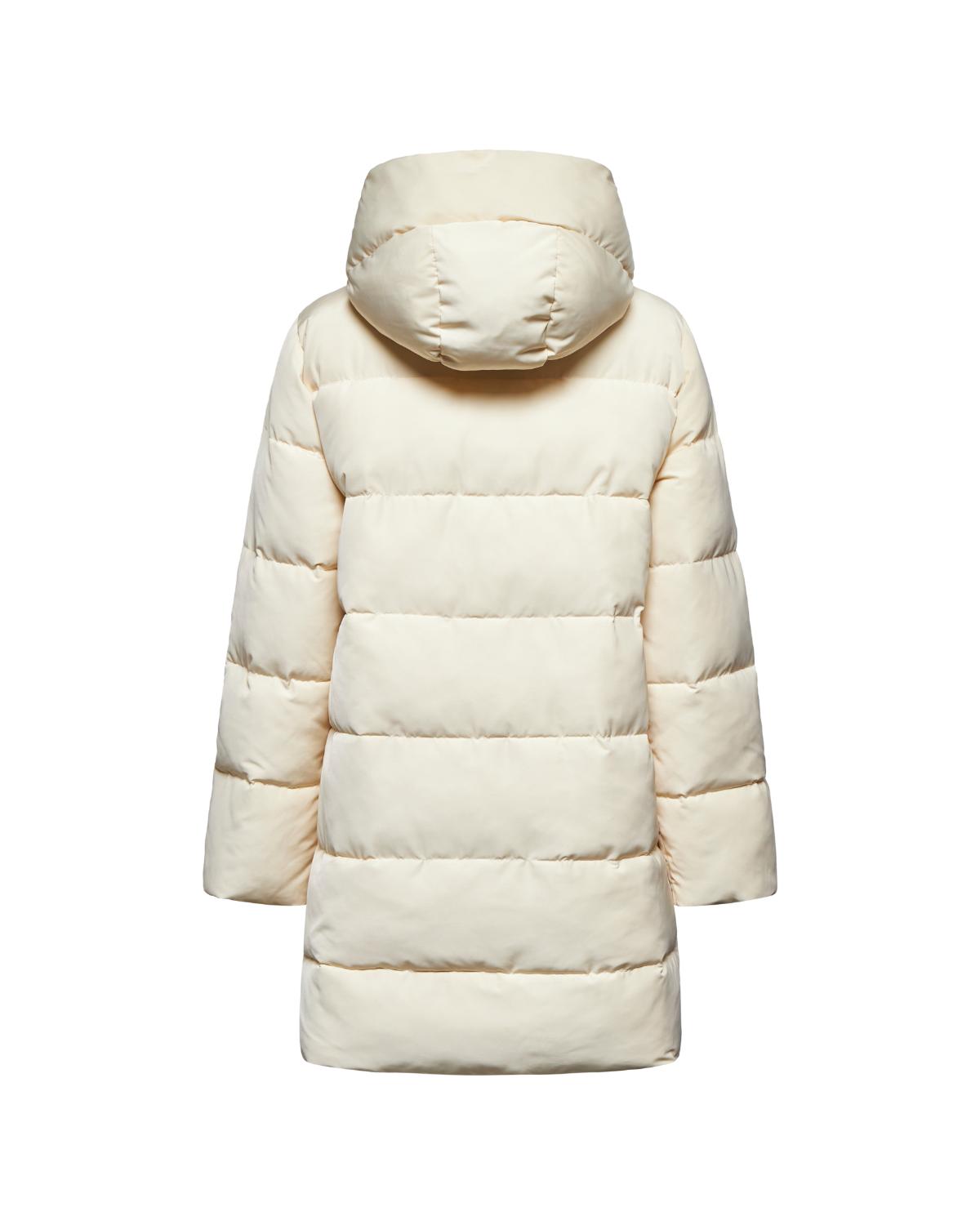 Linee pulite e design funzionale per questo piumino lungo con cappuccio. La silhouette essenziale lo rende ideale per completare look urbani e minimal, garantendo calore e praticità.