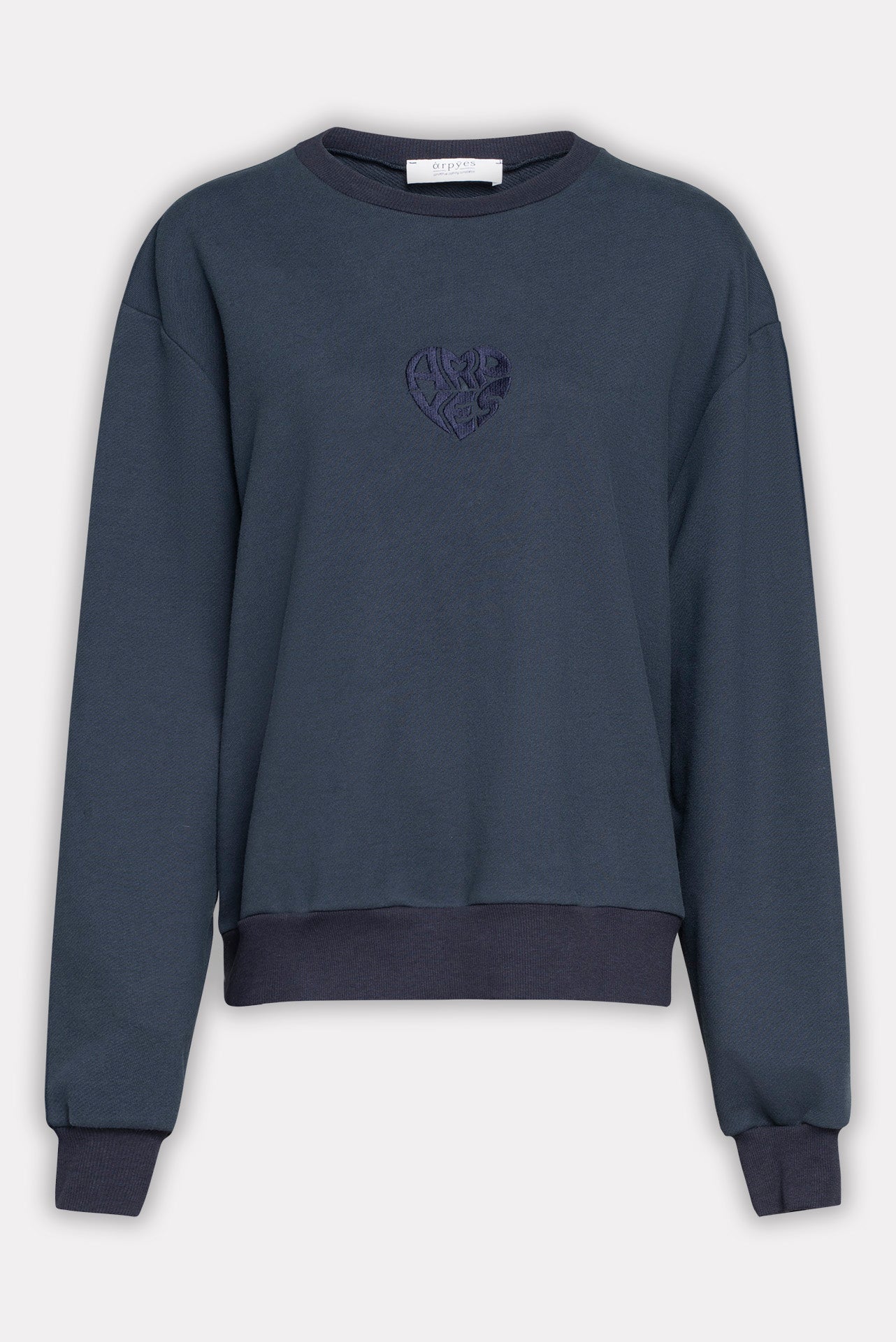 The Unique sweater is made from soft cotton with a washed effect for a relaxed, lived-in feel. It features dropped shoulders, ribbed cuffs and hem, and a round neckline. The front showcases a tonal embossed heart-shaped “ARPYES” logo. Designed for comfort and style, it has a loose, unisex fit perfect for everyday wear.